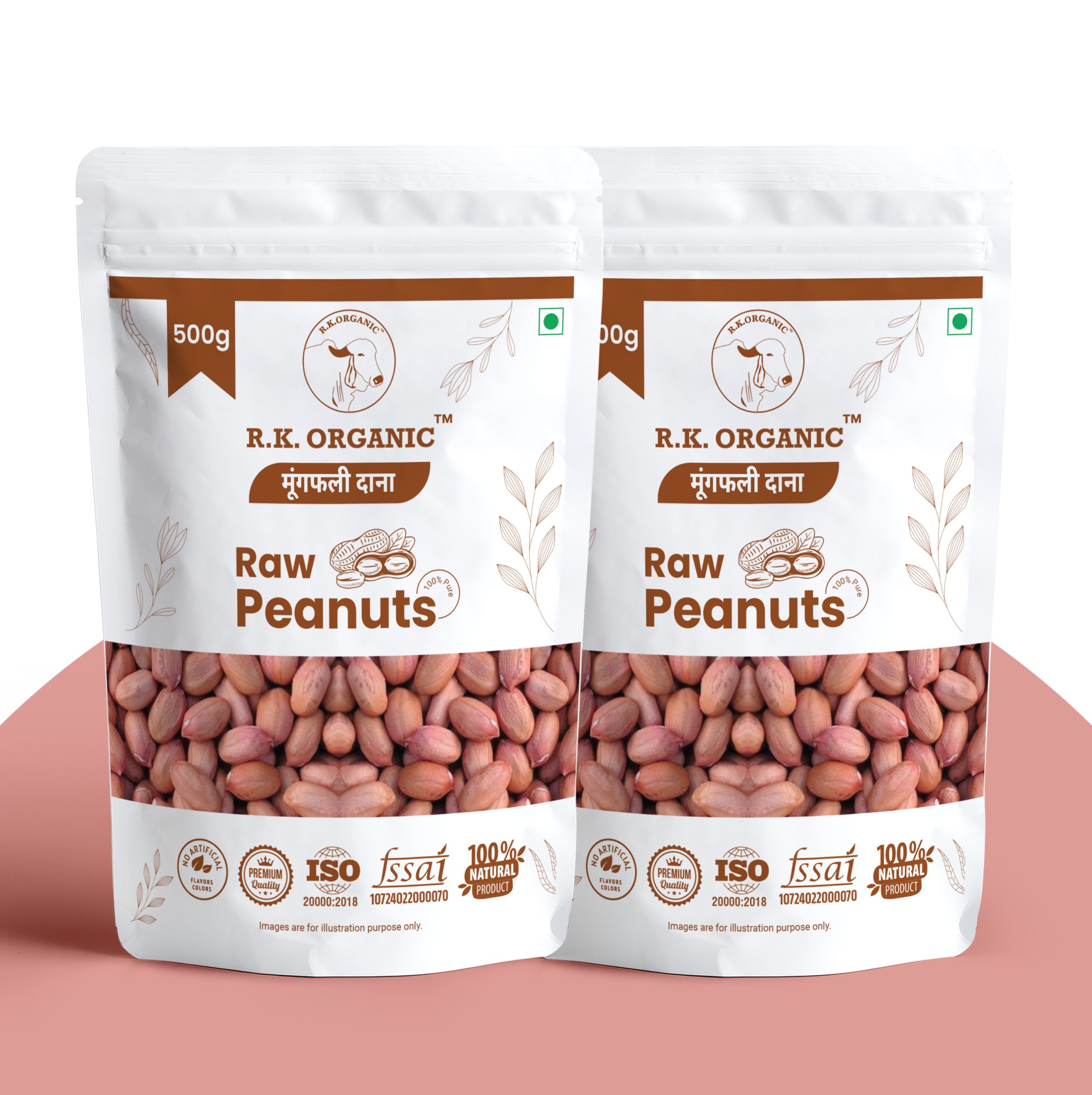 RK Organic Premium Raw Peanuts (Whole) – Natural & Unpolished Groundnuts 500g pack of 2