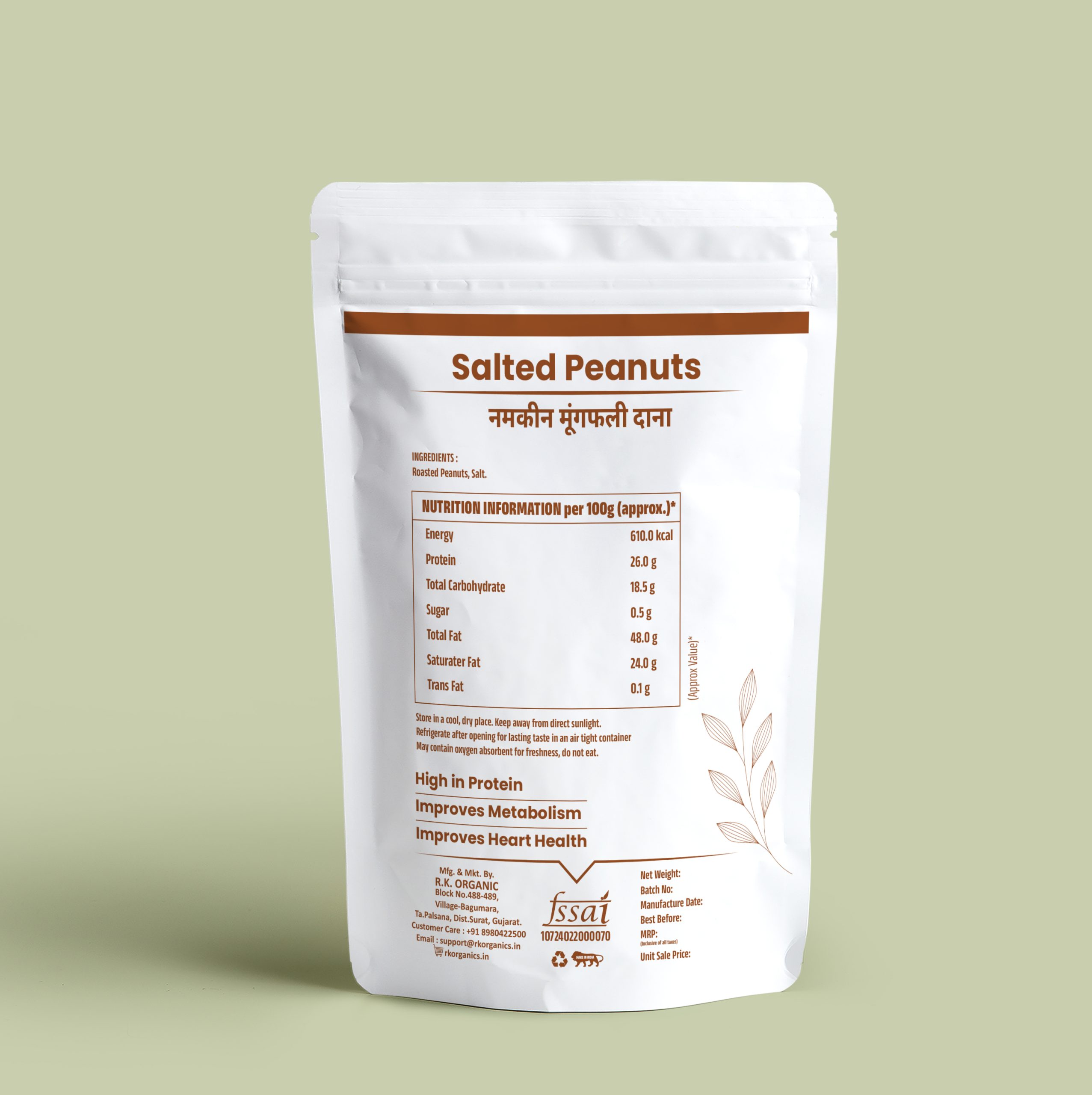 Produced under the trusted brand RK Organic, these premium roasted peanuts are made from carefully selected white peanuts to ensure freshness, crunch, and quality in every bite. They are a great source of plant-based protein and healthy fats, making them ideal for a balanced lifestyle.